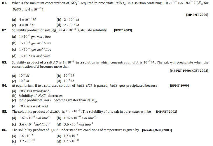 Common ion effect, Isohydric solutions, Solubility product, Ionic product of water and Salt hydrolysis